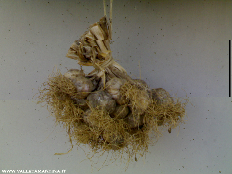 Raccolto l’aglio, fatti i mazzetti e appesi.