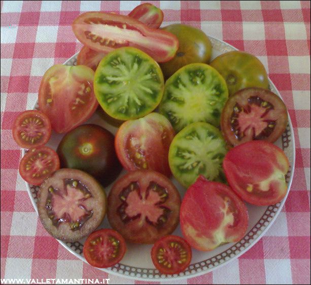 Pomodorini ciliegini, pomodori verdi, Sanmarzano, Nero di Crimea, Cuore di Bue.