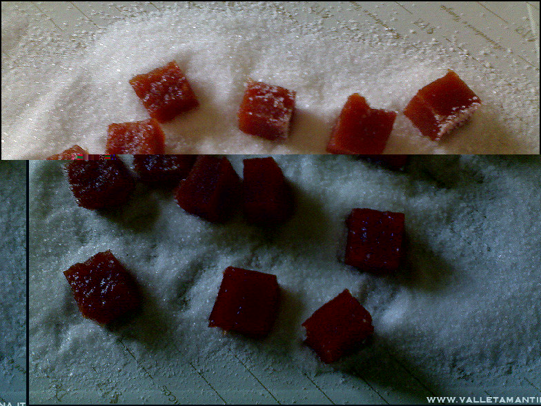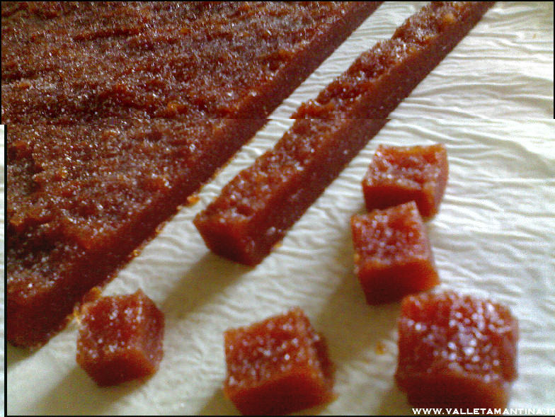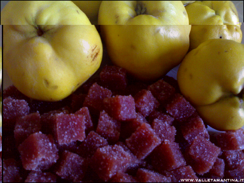 Quest’anno oltre alle mele cotogne della mia pianta, me ne hanno regalate tante, ci ho fatto la marmellata e per la prima volta ho provato… la dolcissima cotognata! Ottimo risultato, è piaciuta a tutti, grandi e piccini! Ne ho ancora una decina e ci farò un dessert, tagliate a pezzettini e cotte in vino rosso e zucchero, servite calde in una coppa da macedonia con sopra una spolverata di zucchero di canna e di cannella in polvere! Vi mostro il mio esperimento con la cotognata!  Allegato: