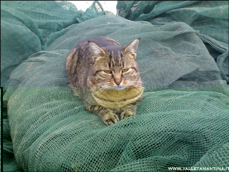 ... e la micia si riposa sui teli lasciati ad asciugare al sole.  Allegato: