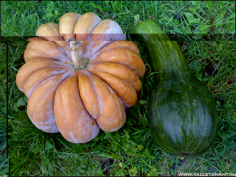 Raccolta l’unica zucca di quest’anno (nella foto è accanto ad una “moscata” che ci è stata regalata). La napoletana ha la polpa bella soda ed è molto meno dolce della zucca moscata. Mi piace e la riseminerò per la prossima stagione, promossa! Allegato: