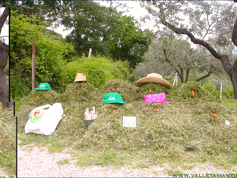 Come ogni anno l’alternarsi di pioggia e sole danno origine a copiosi tagli dell’erba e dopo il lungo lavoro, con un po’ di creatività dò vita ad intere famiglie di pupazzi verdi!  (foto dell’anno scorso).