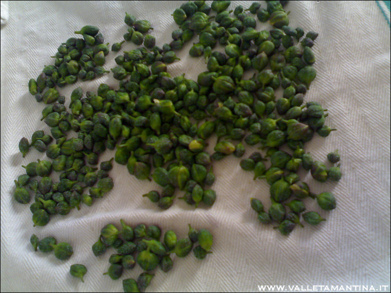 Sono capperi! Questa è la pianta da cui ne ho raccolti per farli sotto sale e sottaceto. Poi dai cetriolini ho ricavato i semi ed ecco qualche centinaia di piantine, spero di riuscire a farli vivere tra le pietre dei miei muretti a secco.