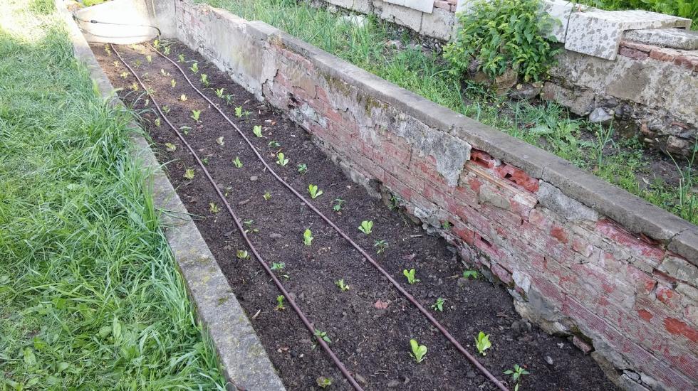 Queste sono alcune piantine di pomodoro costoluto fiorentino trapiantate il 6 aprile in un letto caldo. Tra le piantine abbiamo messo un po' di insalate.