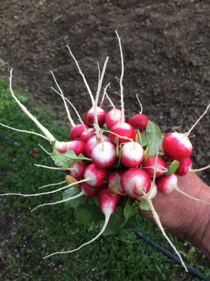 Seminati a Gennaio in pieno campo e coperti con un telo di TNT hanno passato indenni anche il Burian , le foglie sono rimaste piccole ma sotto sotto i rapanelli sono cresciuti Mauro tranquillo che le tengo d'occhio