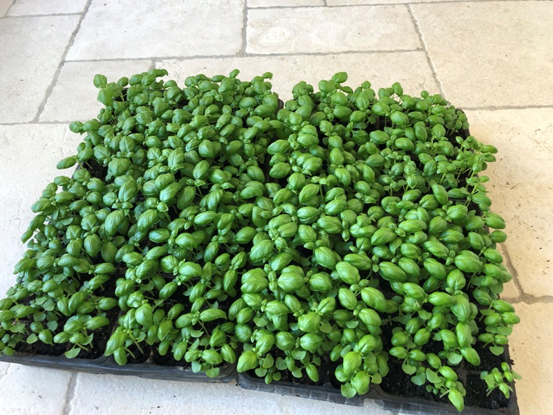 Finalmente sono spuntate le patate ,ma alla mattina continua a fare troppo freddo e per i 2 vassoi di basilico bisogna pensare al piano B , con questi si passa direttamente al pesto  e per il trapianto ne preparo altri 2