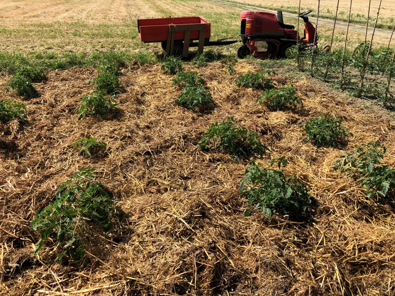 Nelle prossime foto metto la mascherina alle zucchine , così si capisce che sono immagini del periodo  Domenica ho fatto la paciamatura dei pomodori con paglia, oltre a diminuire la crescita delle infestanti mi terrà i pomodori sollevati da terra. Nel sinergico è rimasta una verza ritardataria