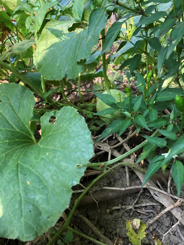 Ecco un paio di panoramiche di come si presenta l'orto sinergico in questo periodo , un vero caos  , non c'è posto neppure per la paglia , ma se si guarda attentamente si possono trovare dei meloni e anche una anguria ,