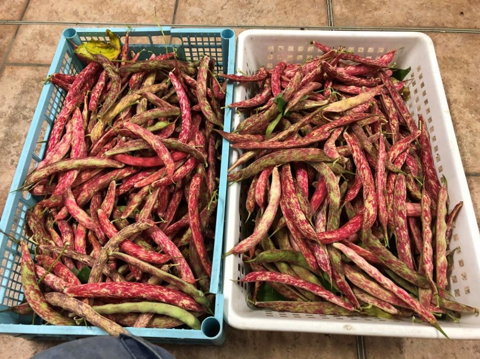 continuo con alcune fragole e un aromatica , origano in questo caso, le bietole hanno qualche mangiucchiata e sono nate spontaneamente Raccolto di fagioli rampicanti , è la prima volta che metto fagioli con la rete e mi sono trovato decisamente meglio