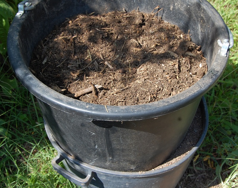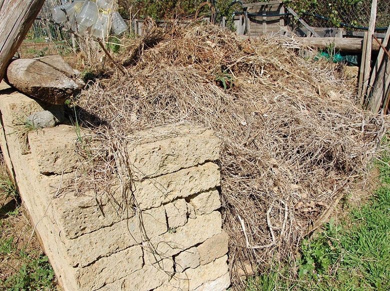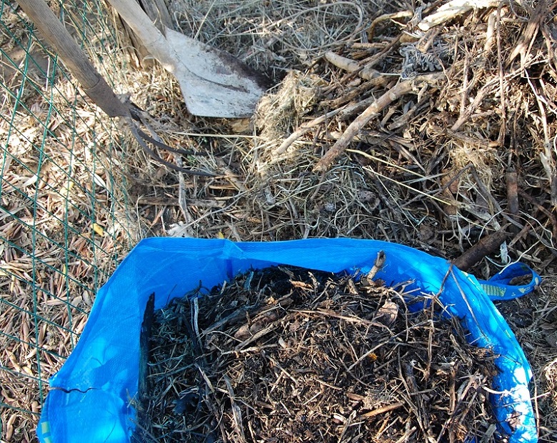 … poi delle ramaglie secche di un anno, e per ultimo la terra. In questo caso l’umidità è assicurata. In questo momento dovrei aggiungere la terra, perché si è abbassata. Allegato: