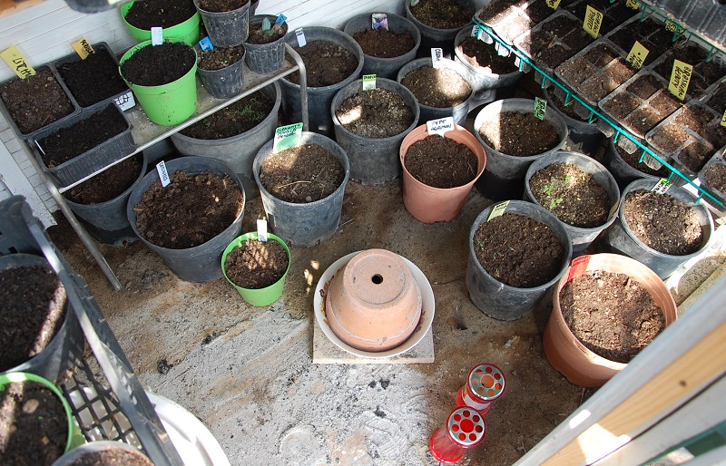 Non essendo chiusa bene, l’anno scorso le lumache mi hanno mangiato le piantine di peperoni e fiori. Quest’anno ho sparso a terra un bel strato di cenere. Speriamo funzioni. E se fa freddo si riscalda con i ceri messi sopra un piattino di ceramica e coperto con un vaso di coccio. Allegato: