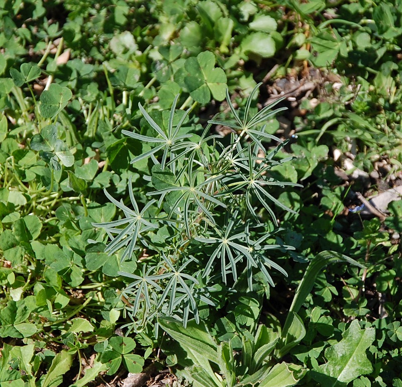 Lupinus angustifolius - qui spontanea. Ho messo dei segni dove si trovano, altrimenti tagliando erba sparirebbero. Allegato:
