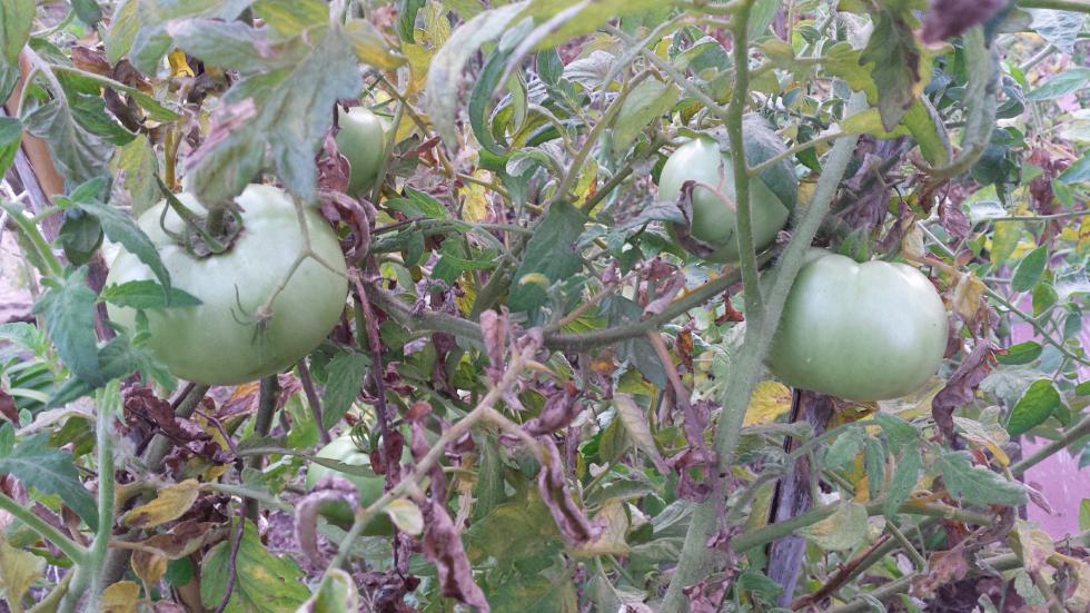 - Pomodori grandi ancora verdi. Appena cominciano a colorarsi devo raccoglierli altrimenti diventano preda delle cimici.