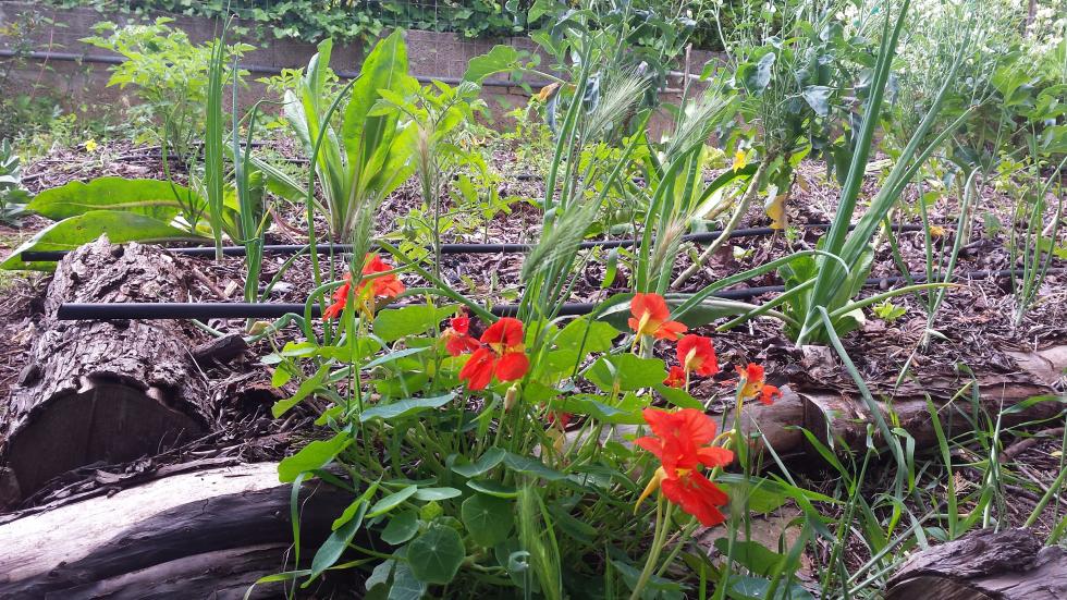 Sto cercando di star dietro con la pacciamatura perché ho notato che là dove la terra è ben coperta, sotto, rimane morbida, umida e piena di infaticabili animaletti che contribuiscono ad aumentarne la fertilità. Anche le erbe spontanee sono tenute un po' sotto controllo, nascono di meno e sono più rade. Certo anche le lumache vi si nascondono ma ormai il loro tempo è quasi terminato. Con l'arrivo del caldo spariranno del tutto fino a fine settembre.