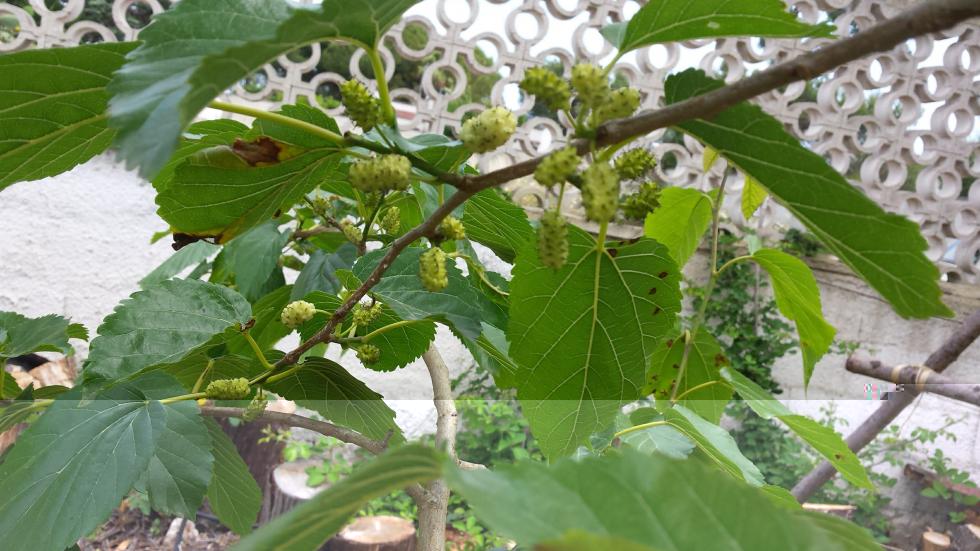 Il mio alberello di gelso si è riempito di bianchi frutti.