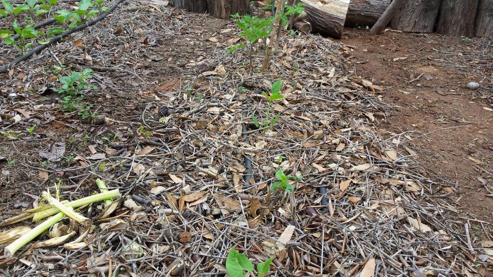 Sto cercando di star dietro con la pacciamatura perché ho notato che là dove la terra è ben coperta, sotto, rimane morbida, umida e piena di infaticabili animaletti che contribuiscono ad aumentarne la fertilità. Anche le erbe spontanee sono tenute un po' sotto controllo, nascono di meno e sono più rade. Certo anche le lumache vi si nascondono ma ormai il loro tempo è quasi terminato. Con l'arrivo del caldo spariranno del tutto fino a fine settembre.