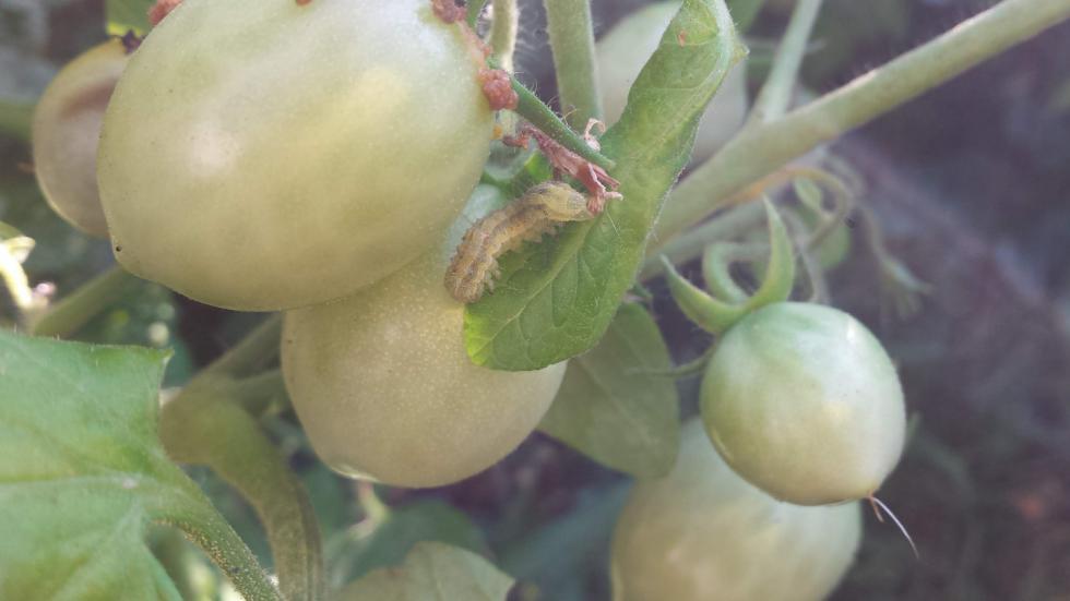 Conoscete il nome di questo simpatico bruchetto trovato su una pianta di pomodoro su un ramo che toccava terra