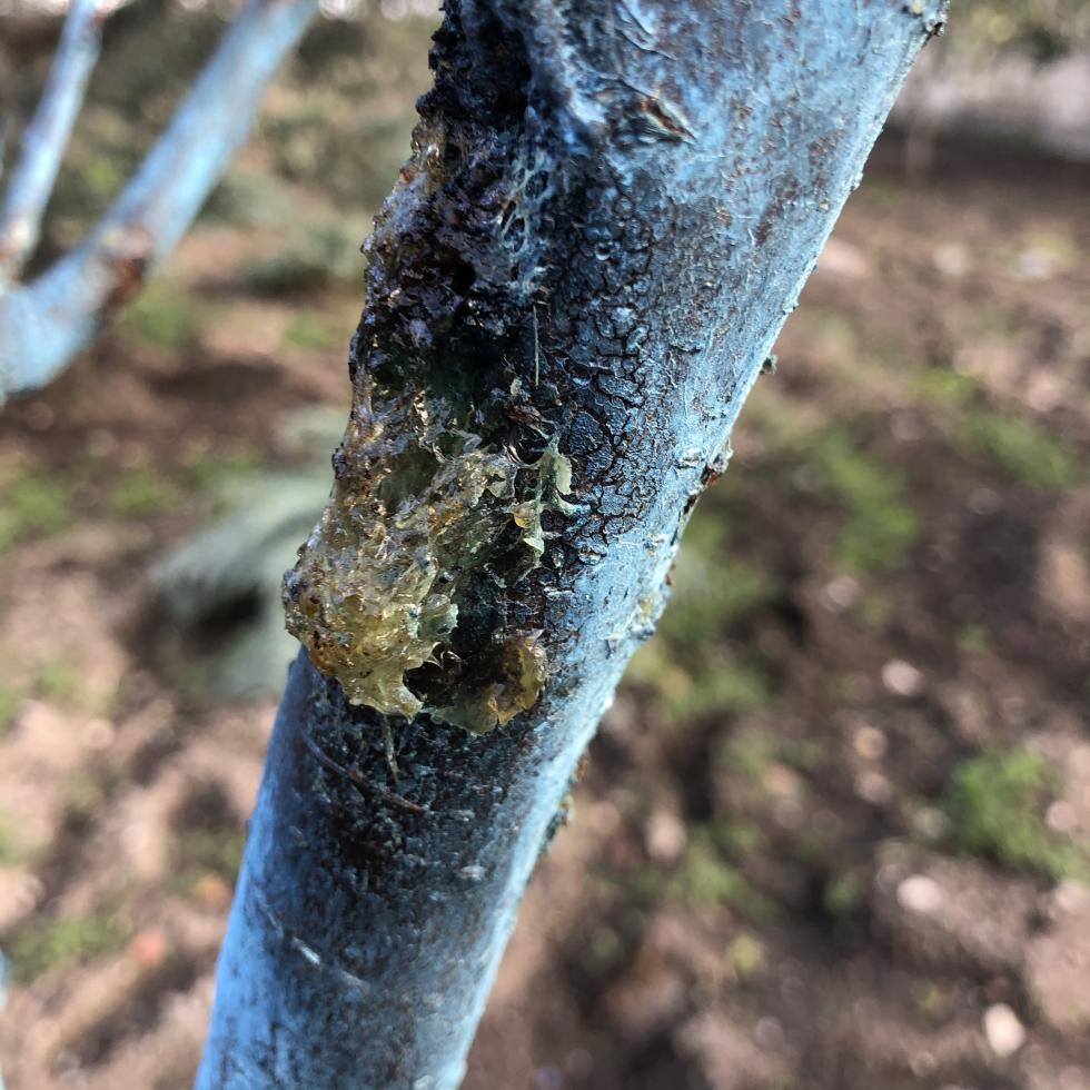 e poi c'è quest'alberello di susine, da novembre ha iniziato a cambiare colore (marrone) e rilasciava liquido e gommosi su tutto il tronco fatto un paio di trattamenti con poltiglia, sembrava essersi ripreso un paio di settimane fa di nuovo e nuovo trattamento ma i risultati sono quelli in foto la parte superiore sembra buona
