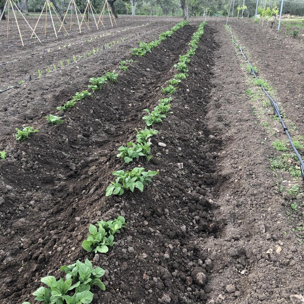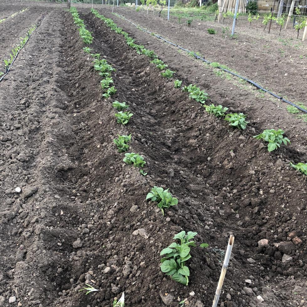 Oggi pomeriggio guardavo le piante di patate, sono passati tre giorni e già sono da rincalzare cmq, mi sà che ho sbagliato la distanza tra le fila, troppo vicine credo che sia l'ultimo rincalzo, sono sceso troppo giù  Allegato: