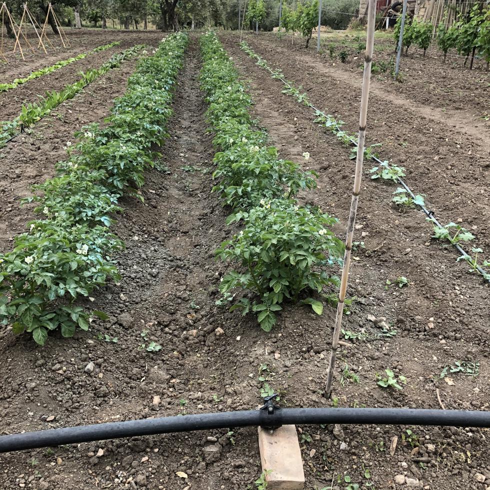 Le patate iniziano a fiorire, ne ho scavata una pianta, sono ancora piccole, speriamo ... Allegato: