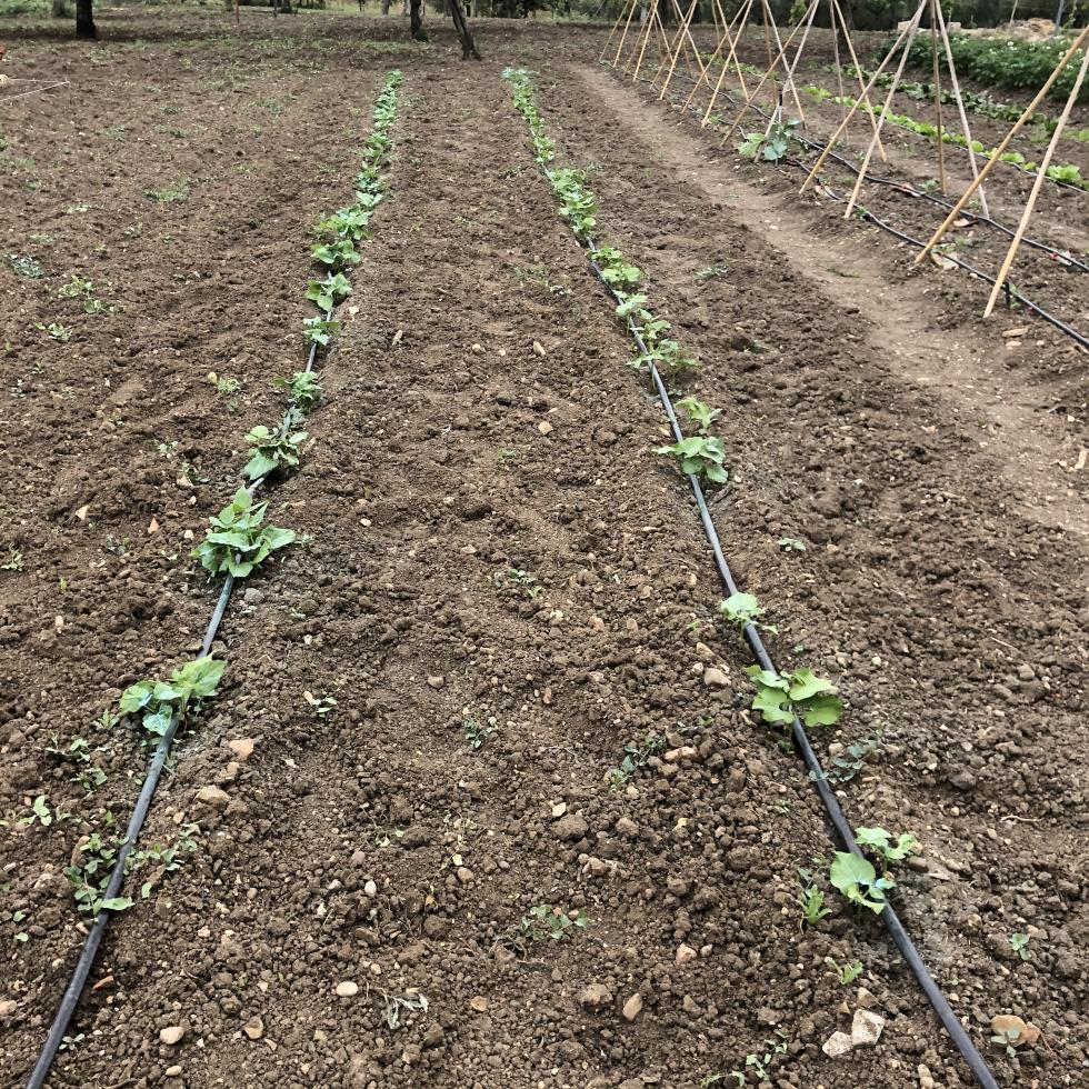 i fagioli, credo di aver sbagliato a fare fossette distanziate di 35 cm, il vicino mi ha ricordato un vecchio proverbio : il fagiolo cresce da solo secondo lui dovevo seminarli nel solco, mah, il prossimo anno proviamo Allegato: