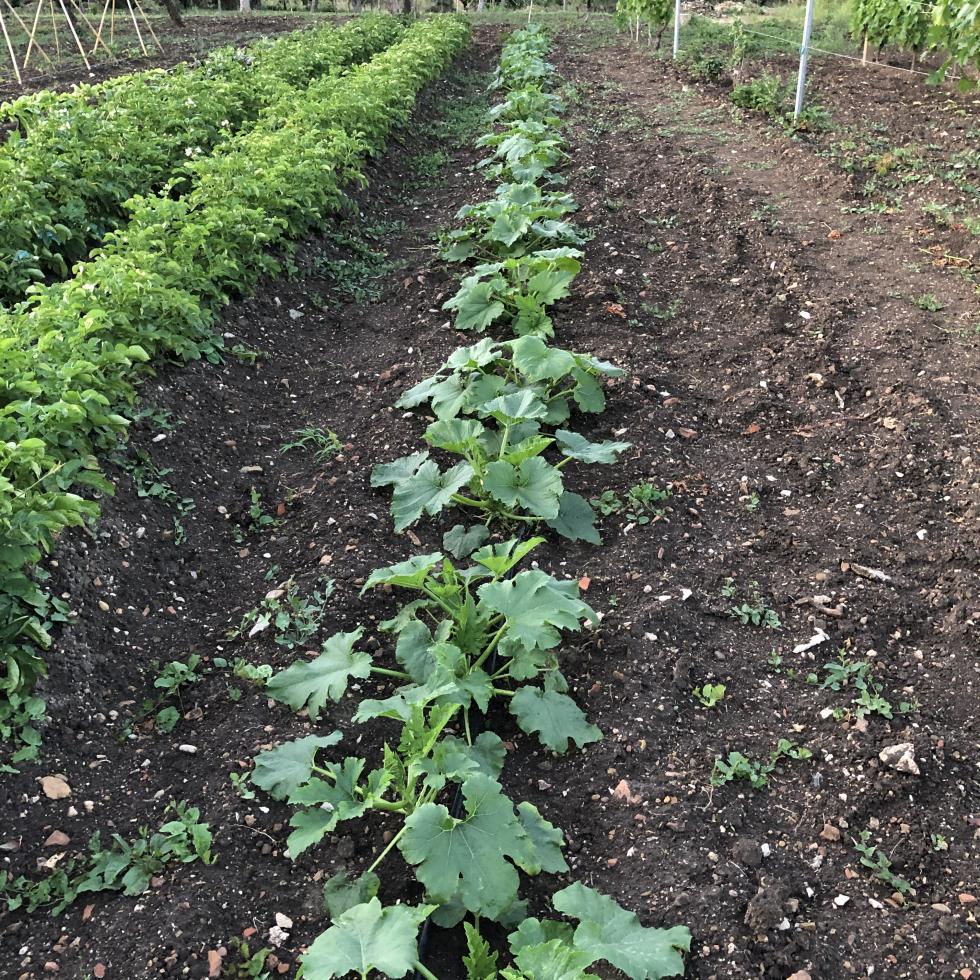 anche le sei piante di zucchine sembrano gradire la posizione all'ombra di alcuni alberelli di pesche Allegato: