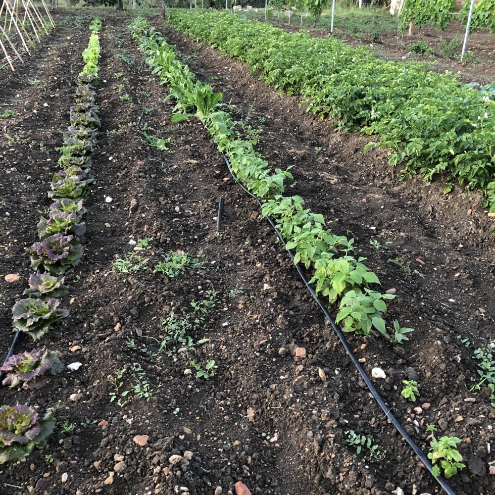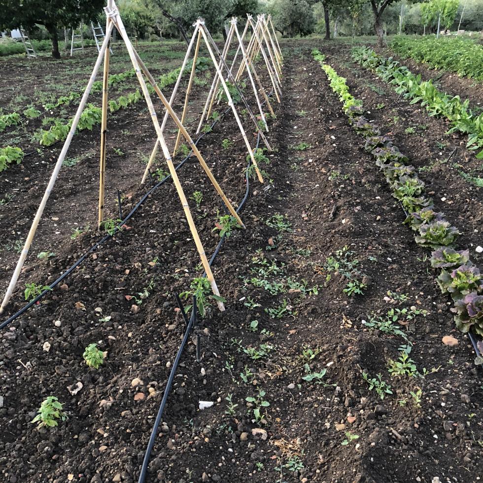 Buona sera Ortisti piccolo aggiornamento sullo stato dell'orto, fatta la prima rincalzatura a queste tre file di pomodori, questa volta ho centrato le distanze tra le fila  passo ancora agevolmente con la motozappa, ho dato una spolverata di zolfo ramato e domani secondo le previsioni dovrebbe arrivare la pioggia. Allegato: