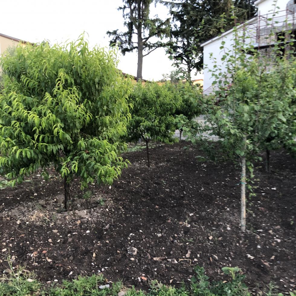 sei alberi (pesche, pesche noci, albicocche e susine) con una discreta quantità di frutti