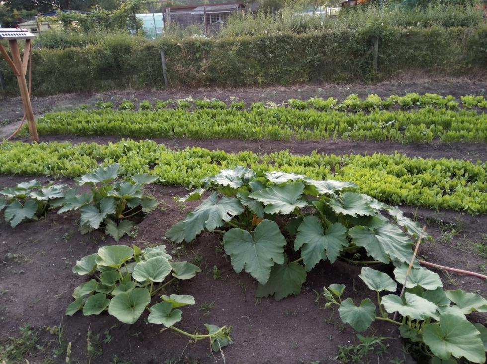 Buonasera a tutti. Ho problemi con un vecchio Mac e non riesco a visualizzare il sito con Chrome o Firefox. Mi è venuto in mente di usare Safari e funziona. Mah! Metto qualche foto dell'orto. Adesso lo chiamo orto perché abbiamo mangiato la prima insalata Volevo chiedere se devo diradare la cicoria Spadona seminata a file e la cicoria zuccherina di Trieste seminata alla dove piglio piglio.Le zucchine sono esplose e chi le vede degli altri giardinieri fa sempre i complimenti. Ho messo sotto ogni pianticella una bella dose di pellets di stabbio di cavallo. I fagiolini non erano usciti e li ho ripiantati una decina di giorni fa. Adesso sono usciti. Gli spinaci non sono germinati tutti e sembrano un poco spellacchiati. Comunque sono contento. Ho messo un innaffiatore così non devo fare Tarzan con il tubo dell'acqua per non schiacciare le piante. Ho ordinato un computerino con rilevatore di umidità che tra un paio di settimane andiamo in vacanza in Italia. Scrivo un poco di fretta che devo recuperare mia figlia tra venti minuti. Grazie a tutti e buon orto.