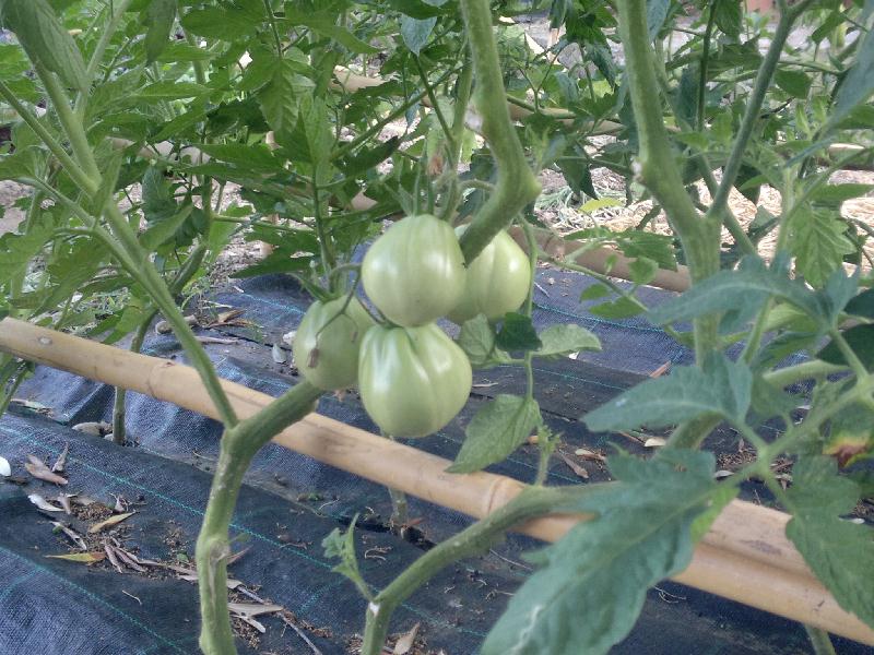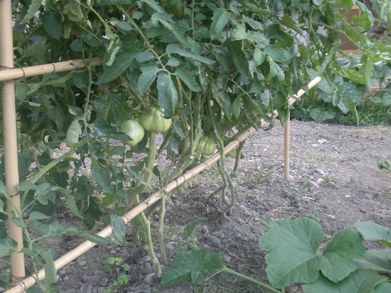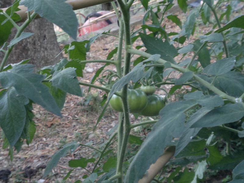 Le foto post precedente si riferiscono ai primi cuore di bue che hanno reso poco, mentre le seconde due foto sono un cespuglio di cinque piante nate spontanee in mezzo alle fave, che ho tirato su e incannato li, per adesso sono i più prolifici