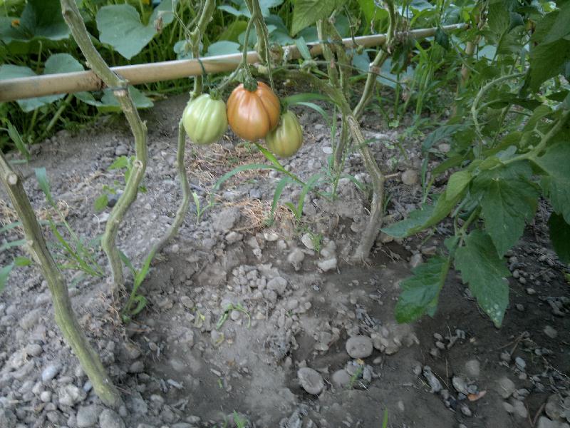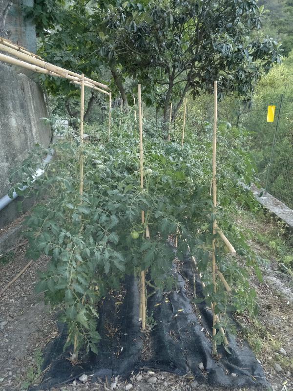 Le foto post precedente si riferiscono ai primi cuore di bue che hanno reso poco, mentre le seconde due foto sono un cespuglio di cinque piante nate spontanee in mezzo alle fave, che ho tirato su e incannato li, per adesso sono i più prolifici