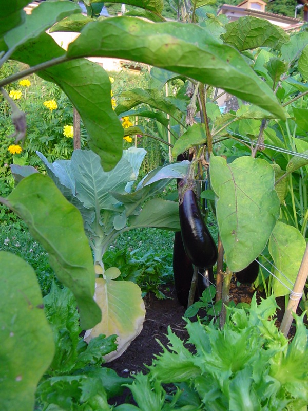Le melanzane all'inizio avevano degli afidi piccolissimi sotto le foglie e formiche .... poi ha piovuto e sono spariti! adesso però le piante stanno crescendo parecchio in altezza ... non so se è un bene !