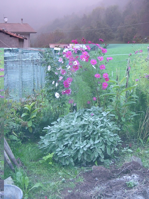 Ancora Cosmos e una splendida salvia a foglie larghe (dietro lamponi bianchi lavanda ribes etc etc vicino un nespolo del giappone) Allegato: