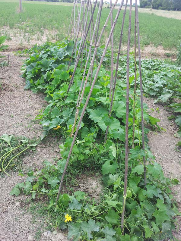 Passiamo all'orto in campagna. Atlantic giant, che mi sa che hanno un po' sete, o forse è il caldo perché mio padre le ha irrigate col gettone l'altro giorno. Purtroppo i primi rami laterali hanno già finito lo spazio a disposizione, mi toccherà tagliarli. Allegato: