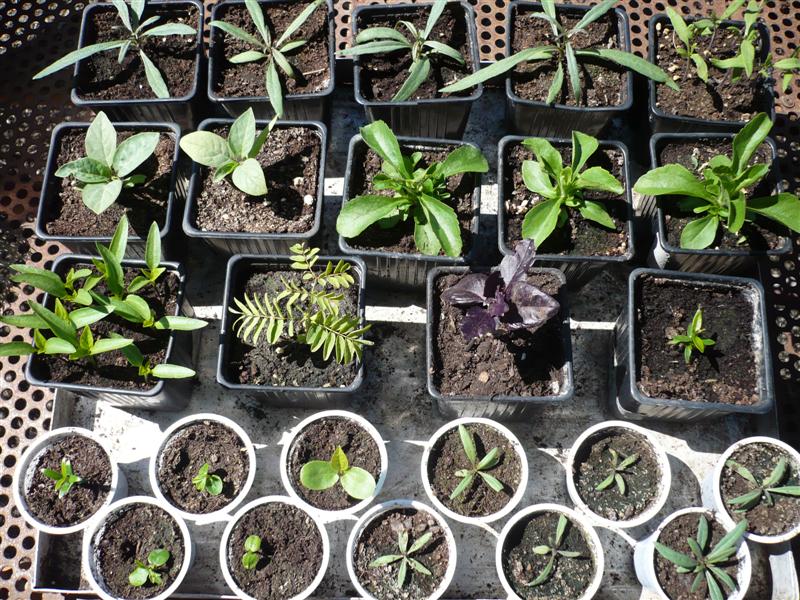 crescono a vista d'occhio!  qui c'è un po' di tutto: goji, stevia, datura, basilico, peperoni, mirto, passiflora... Allegato: