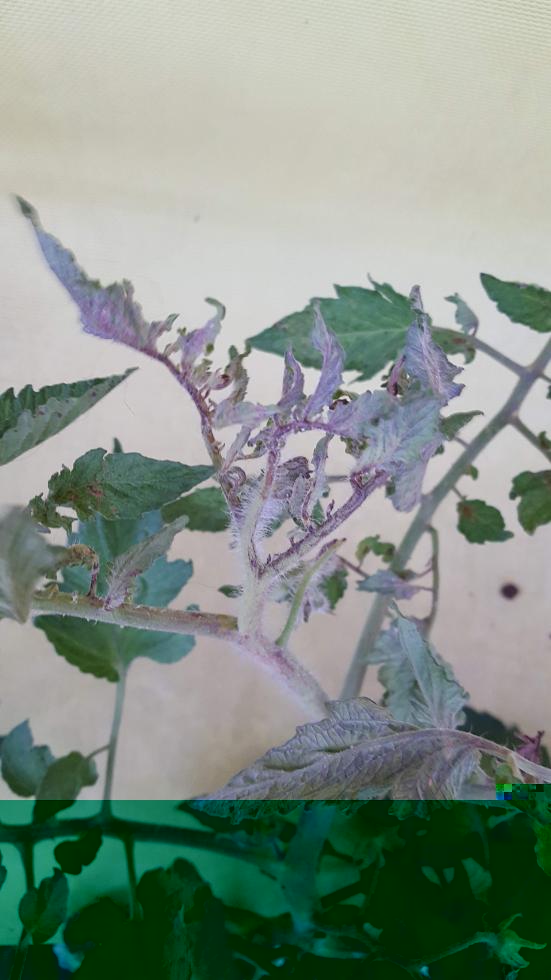I punticini bianco-sporco potrebbero essere semplicemente esuvie degli afidi. I tripidi si vedono anche a occhio nudo sotto le foglie. TSWV è trasmesso da questi ultimi, in particolare da Frankliniella occidentalis.