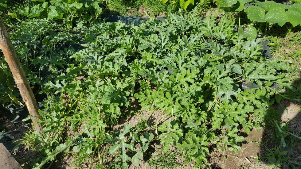 Le angurie hanno preso il via diramandosi in ogni direzione, credetemi, le sto guidando a fatica, so che è una guerra persa, ma la voglio combattere comunque, e come ogni anno dovrò alzare bandiera bianca lasciandole arrampicare anche sui san marzano Qualche frutticino quà e là ha già allegato, speriamo cresca e si gonfi a dovere Allegato: