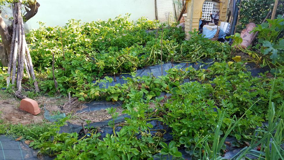 Le linee dedicate alle patate ed ai cannellini (solo una parte sono in foto) vanno avanti senza grossi problemi... Per le patate non avevo più terreno da apportare per la rincalzatura, sono cresciute in altezza e sono poi collassate sotto il loro peso... da terra hanno ricominciato a puntare in alto ed a vegetare come se nulla fosse. Anche in questo casso nessun trattamento, niente parassiti letali né peronospora Allegato:
