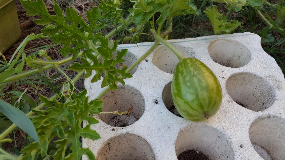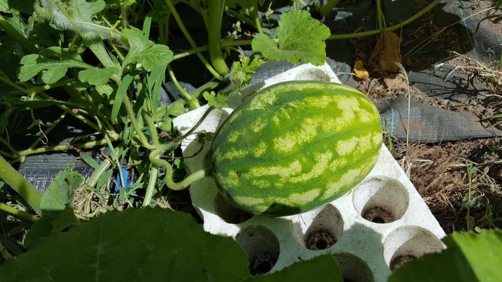 Anche le angurie hanno preso il largo, le sto guidando con molta fatica. Diversi frutti sono allegati e stanno maturando, non vedo l'ora di assaggiarli Allegato: