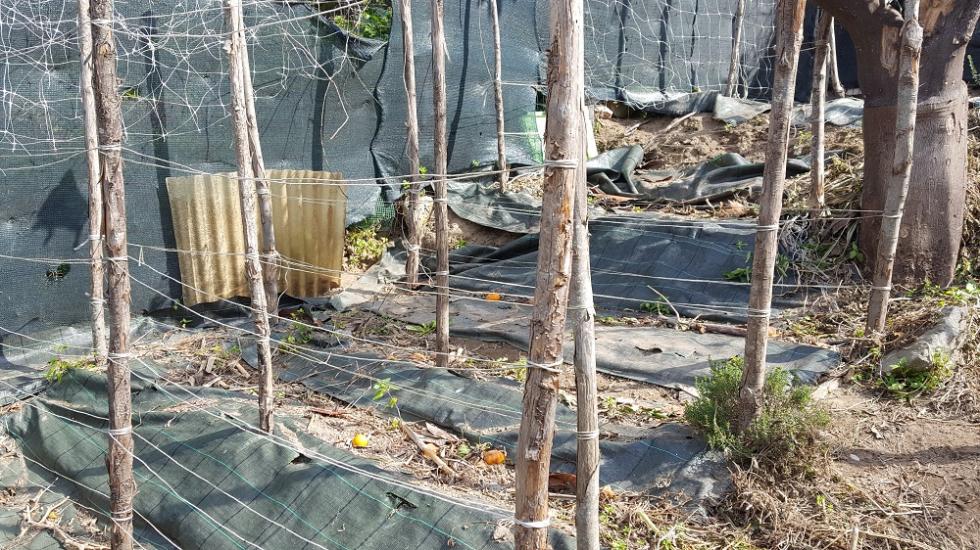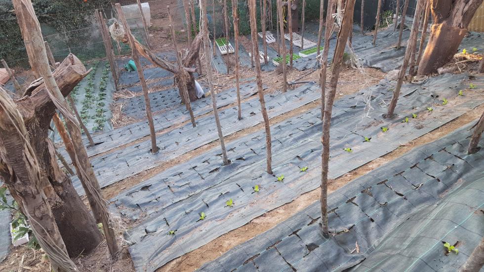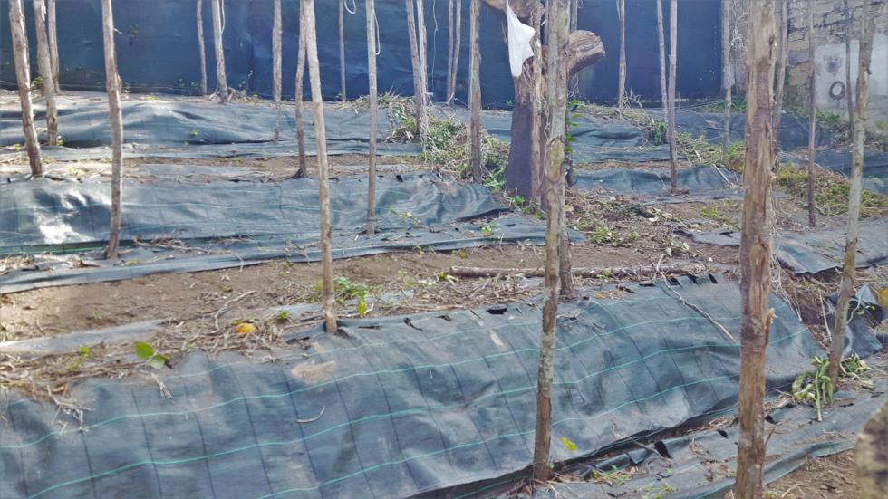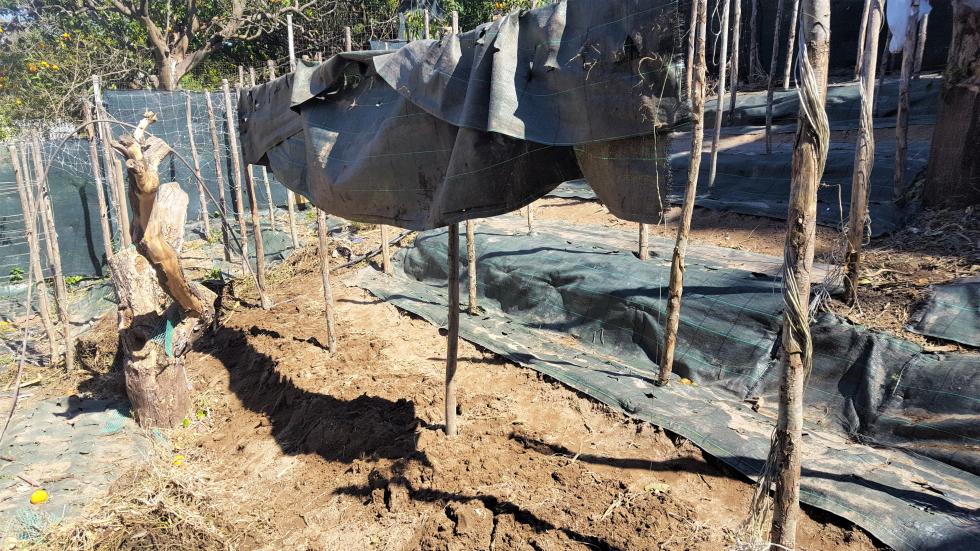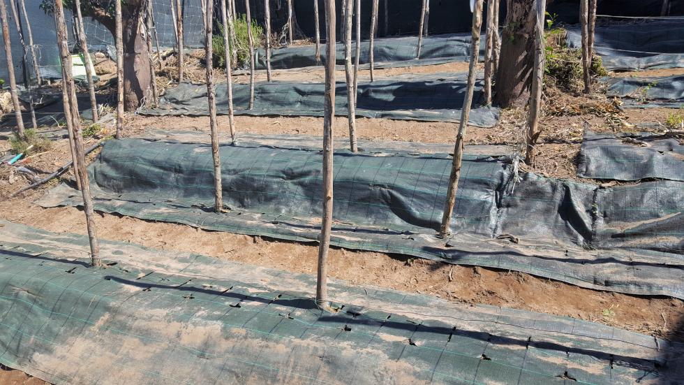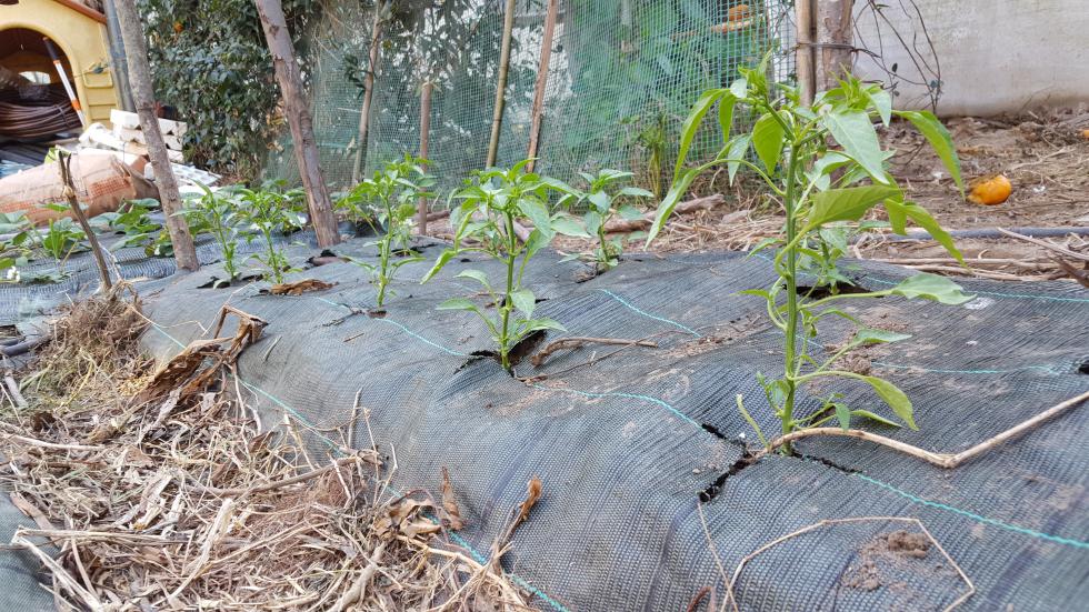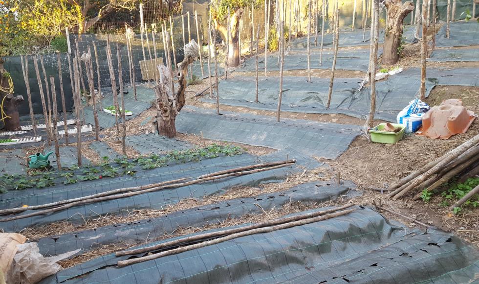 Intorno alla fine di Febbraio inizio la preparazione delle prode. Dallo scorso anno ho introdotto la novità dei teli in polipropilene, non sempre graditi per via della presenza di plastica, ma che personalmente ho trovato molto pratici e resistenti, tra l'altro se si passa una fiamma sui bordi derivanti dai "tagli" gli sfilacciamenti sono davvero molto contenuti se non assenti. Vista la selva di pali tenuti insieme da un intricatissimo dedalo di fil di ferro che non avevo voglia di districare, ho deciso di preparare le prode senza rimuoverli, sollevando semplicemente i teloni e lavorando sulla linea fra i pali. Sollevato il primo telone mi sono reso conto che il terreno rimasto coperto aveva mantenuto la sua morbidezza come quasi appena zappato, uno spettacolo per i miei occhi e per le mie mani che affondavano quasi incredule per 20 cm almeno Allegato: