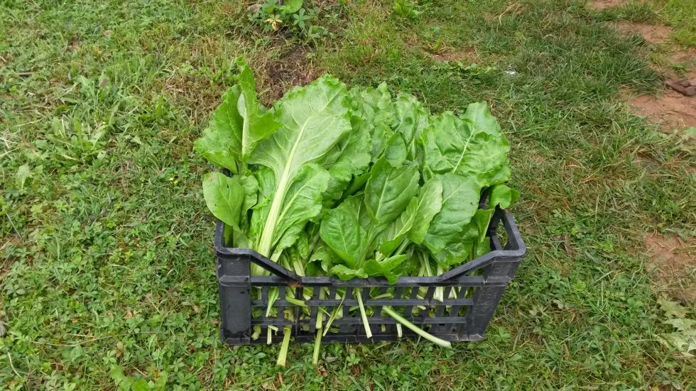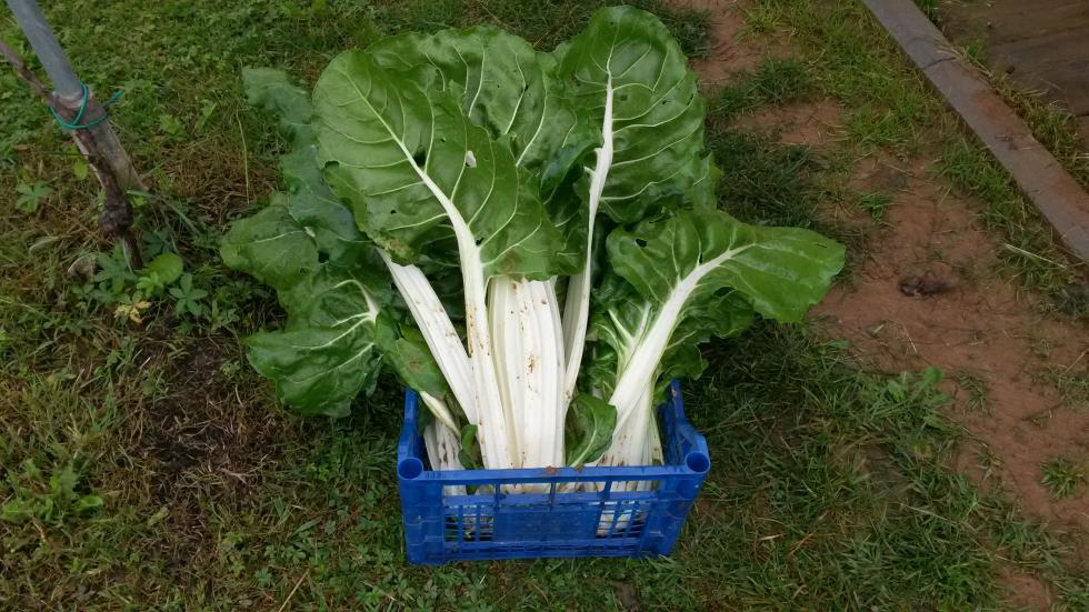 Pomeriggio o messo gli stivali da pescatore e o raccolto un po di erbette e coste perchè cominciavano ad andare in fiore già pulite sbollite pronte per congelare o separato le coste più grosse per fare fritte