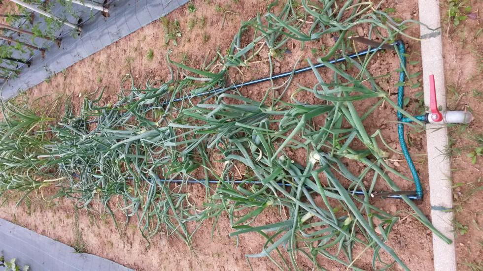 Anche se è ancora maggio, le mie cipolle cominciavano a buttar fuori il fiore e allora questa mattina le o calpestate apiattendole a terra. Ciao traco