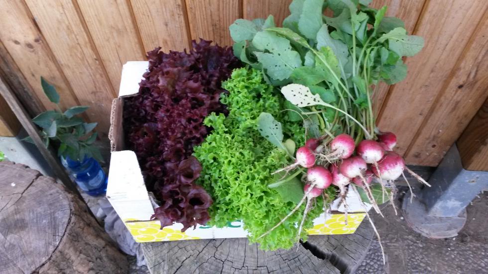 intanto si comincia a raccogliere qualcosina lattuga lollo, rapanelli, spinaci e qualche zucchina