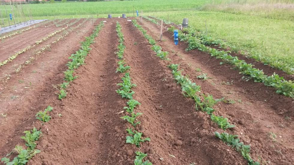 Oggi approfittando di una pausa di mal tempo ho rincalzato abbondantemente le patate i segni delle gelate dei giorni scorsi per fortuna sono spariti sembra non sia successo nulla