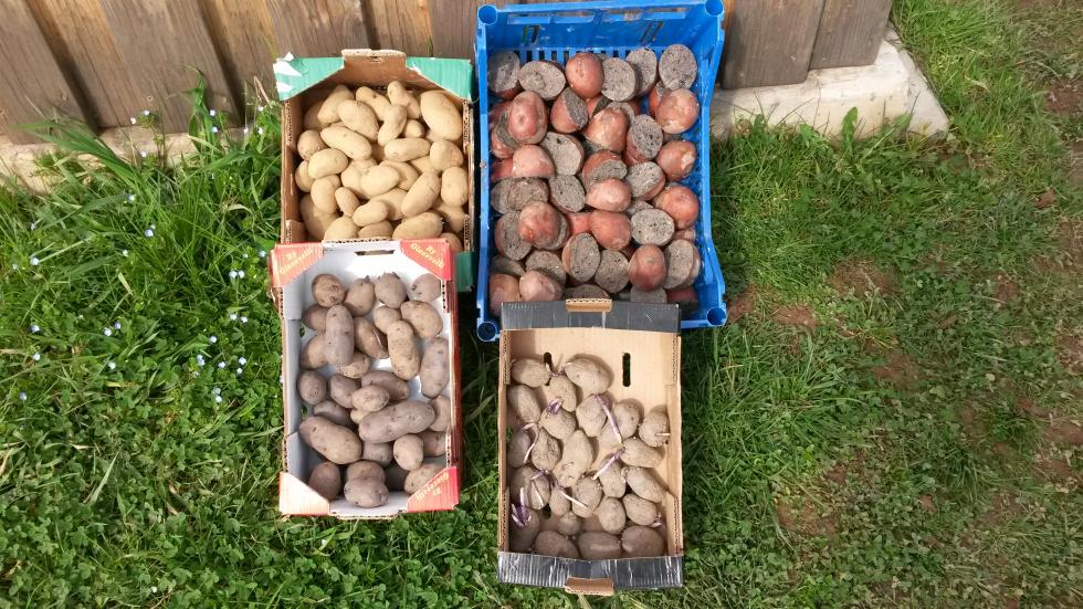 Sperando che la primavera arrivi si continua a seminare oggi patate quattro qualità SPUNTA rossa tipo DESIREE e due BLU una seme di Mauro poi i ceci seme che arriva dall'orto di Laura