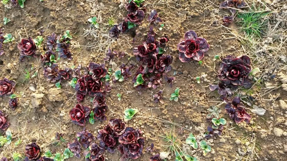 sono i radicchi a grumo, in inverno le foglie lessano e poi ricacciano la rosellina. quello che è prezioso è la radice. si seminano abbastanza fitti e non si diradano. si usa entrare con la falce e tagliare tutto a poco da terra per rinforzare la radice e la pianta stessa. la stessa cosa la si fa con i radicchi da ceppo quando li trapianti. rinforzi la pianta.