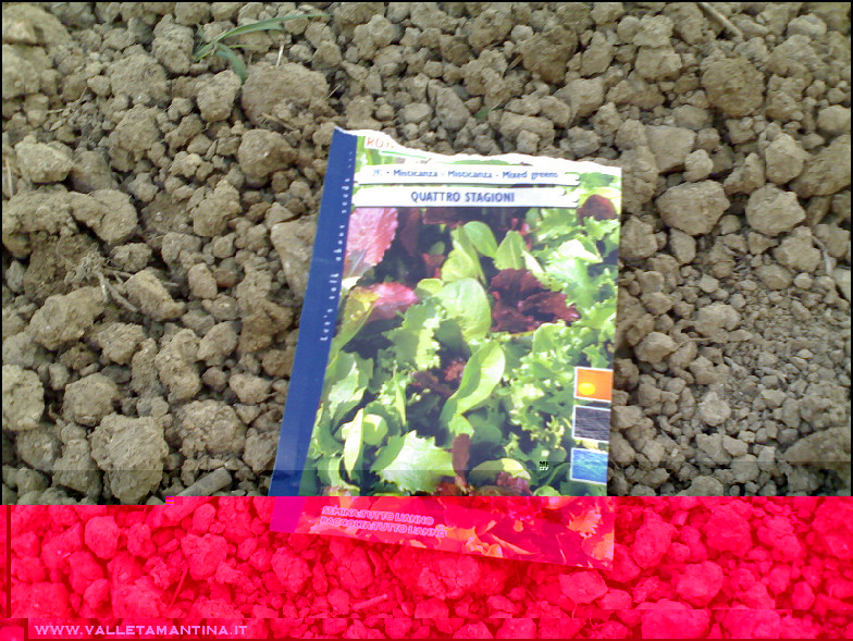 Seminata la rucola e la misticanza a spaglio, coperte con tessuto non tessuto per alcuni giorni e acqua a volontà. Allegato: