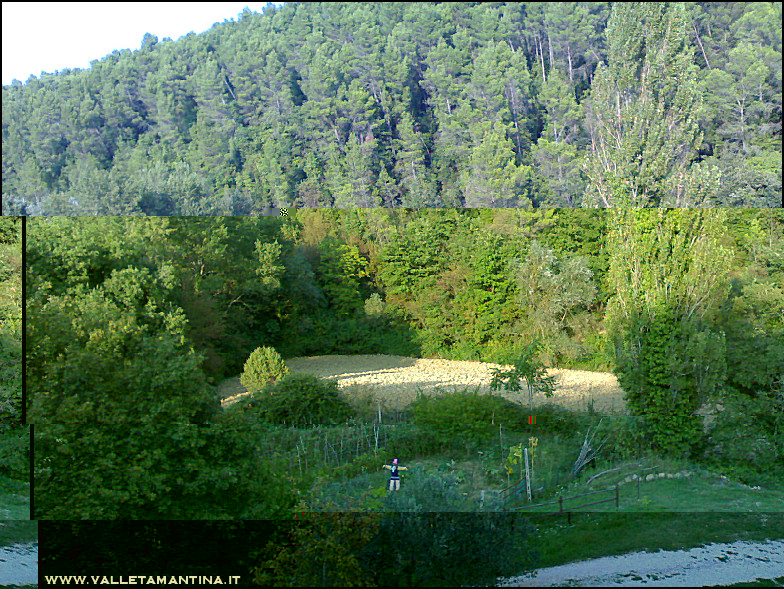 Ciao Carmen, quei fiori rosa/fucsia sono di una pianta fuori dall’orto, che non ho ben identificato, potrebbe essere una lagerstroemia, ma non ne sono affatto sicura, magari posterò delle foto nel forum per averne conferma. Ed ora un po’ di aggiornamenti… Panoramica… orto e maggese (il campo accanto all’orto dove abbiamo raccolto il farro è stato lavorato). Il bosco sta iniziando a vestirsi coi caratteristici colori autunnali. Allegato: