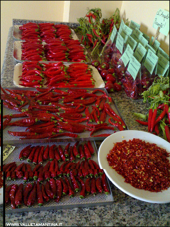 Quest’anno sarà da me ricordato come l’anno dei peperoncini…  non li ho pesati, ma da freschi i tre raccolti saranno stati 4/5 chili. Peperoncini essiccati e confezionati, in essiccazione e freschi. Allegato: