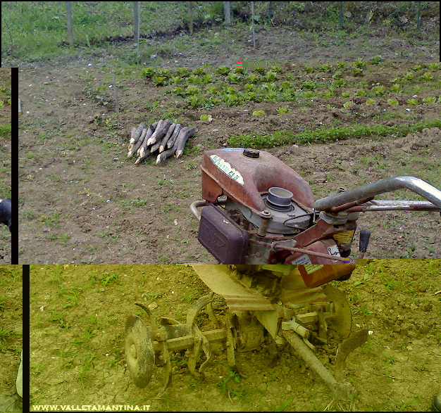 Fine maggio con la motozappa nell’orto… sembra quasi un residuato bellico! Dopo 20 minuti di lavoro sono arrivati i primi problemi  lunedì andrà dal “dottore specializzato”  per cambio filtro/galleggiante e forse carburatore. Abbiamo comunque lavorato una bella porzione di orto. Allegato: